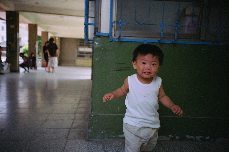5/17趁周末帶他到學校去玩,本來都會去跑道上玩的,但是因為太熱了,所以只能在走廊上玩耍!!